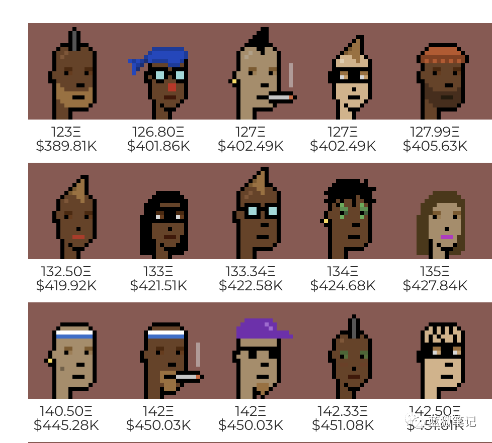 CryptoPunks通过在传统拍卖行(如佳士得)拍卖、参加艺术作品展以及传统媒体的报道,加上其最初新奇的理念,逐步为人们所知。