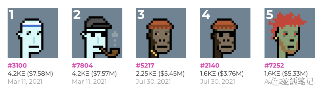(CryptoPunks的底部价格,Larva Labs)而价格最贵的Cryptopunks则高达4,200ETH,超过750万美元。