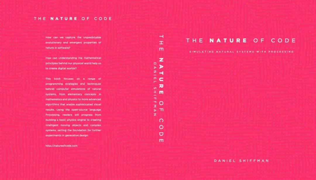 3. The Nature of Code - Simulating Natural Systems with Processing:适合有编程基础的,需要掌握 Processing 的基础编写,或者把以上两本其中之一跟完的。全书根据不同课题教导如何用代码模拟自然生态系统,可以制作更高阶的视觉效果。