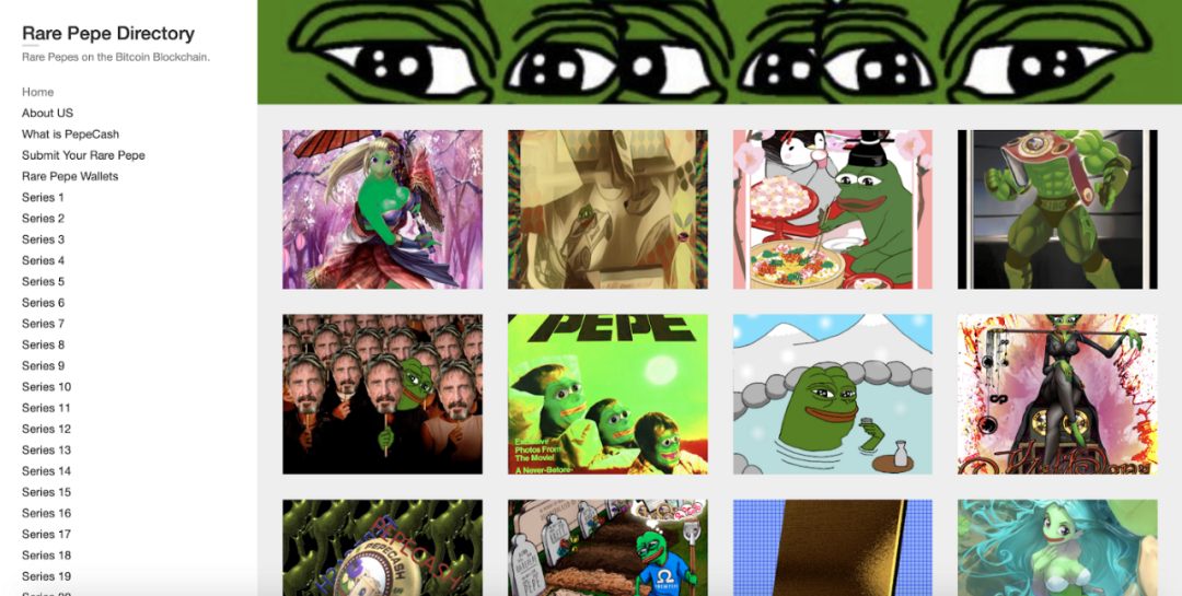 Rare Pepe 仅仅上比特币区块链是不够的,还需要“专家”来证明这些佩佩蛙的稀有性。尽管有些荒谬,但是这个例子表明人们对独特的数字产品是有需求的。如今,Counterparty在其平台上建立了许多项目,其中许多涉及类似NFT资产。您可以在这里浏览网站上的各种项目。