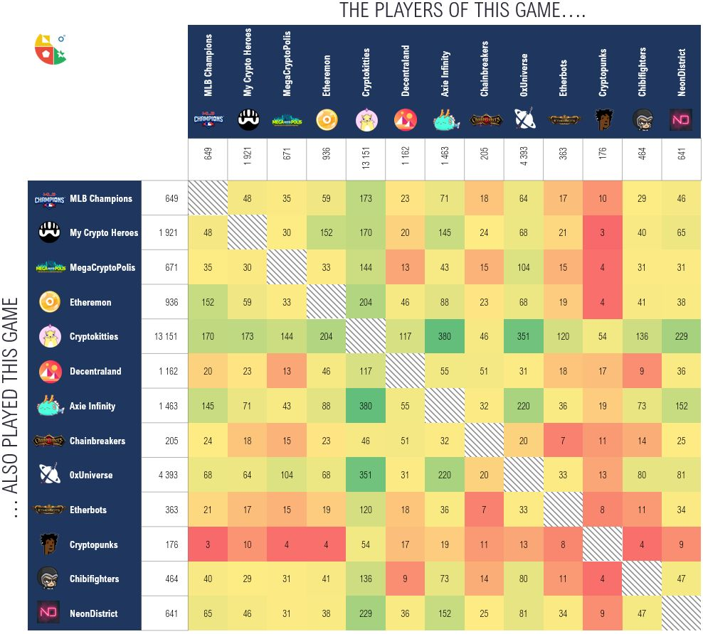 此图表显示拥有CryptoKitties的人倾向于玩其他NFT游戏,而玩其他NFT游戏的人通常不会玩其他游戏。CryptoKitties是进入NFT世界的完美门户。