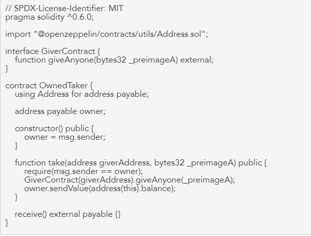 为了让这个挑战更有趣一点,我们又做了一次混淆的尝试,这次使用了一个只有我们可以使用的代理合约,一个OwnedTaker。