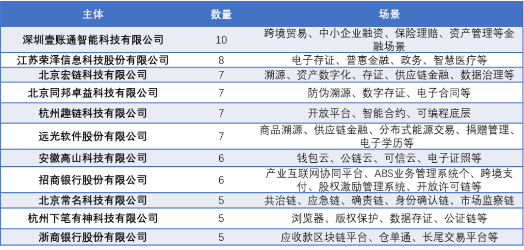 从备案信息来看,这些上市公司所提供服务主要覆盖存证、溯源、供应链金融、跨境支付等应用场景。