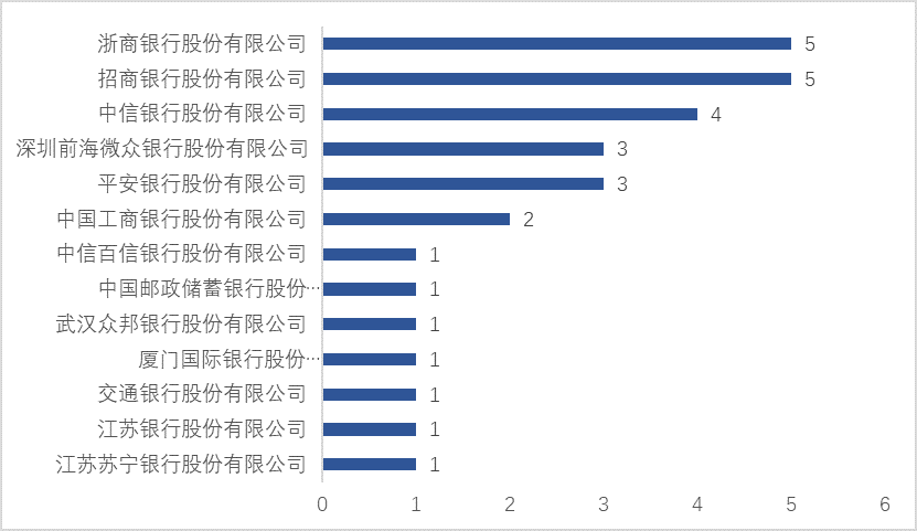 与金融类区块链应用相关的企业中,有13家商业银行通过了29个备案信息。银行在区块链布局方面向来表现积极,也是众多金融机构中实践成效最好的一类。