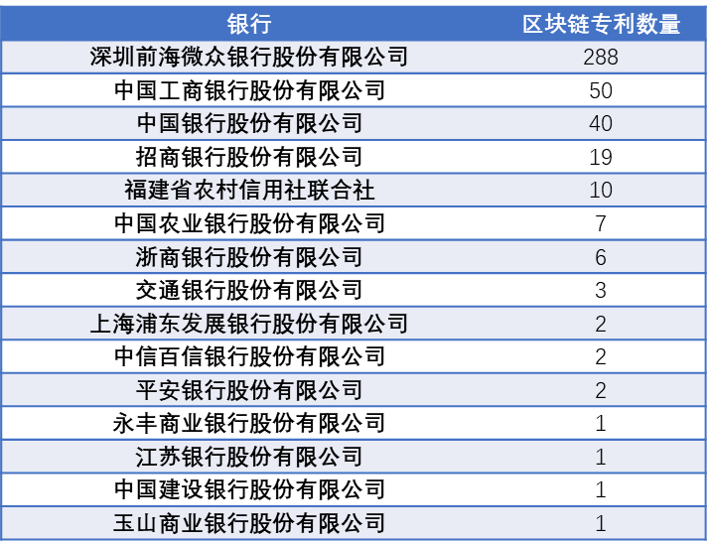 表4:银行区块链专利申请情况 (截至2019年12月)