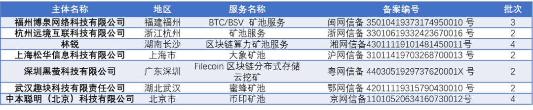 而在前三批次备案信息中,也多次出现了与矿池、挖矿相关的服务备案。