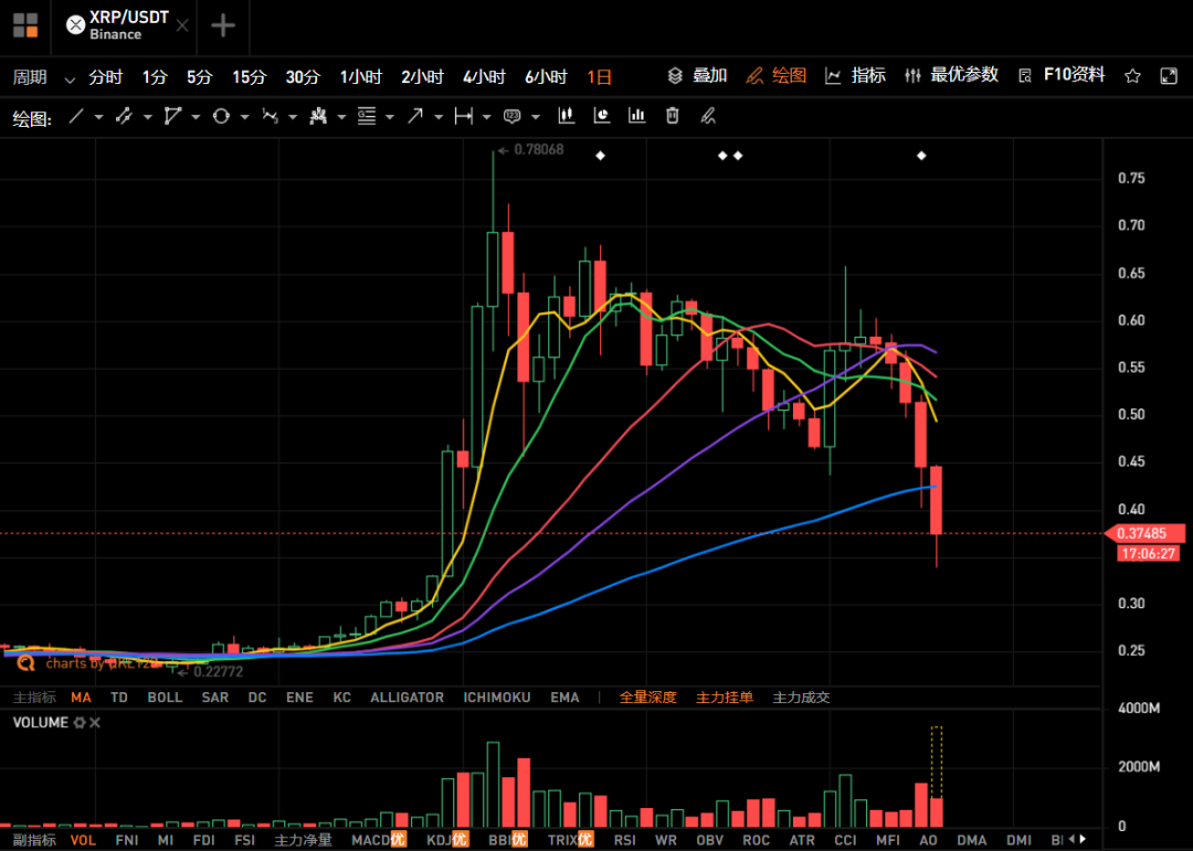 自从Garlinghouse决定公开这起诉讼案以来,XRP的价格呈自由落体式下跌。从qkl123.Com显示的日线图看,XRP连续两日下跌幅度接近20%。