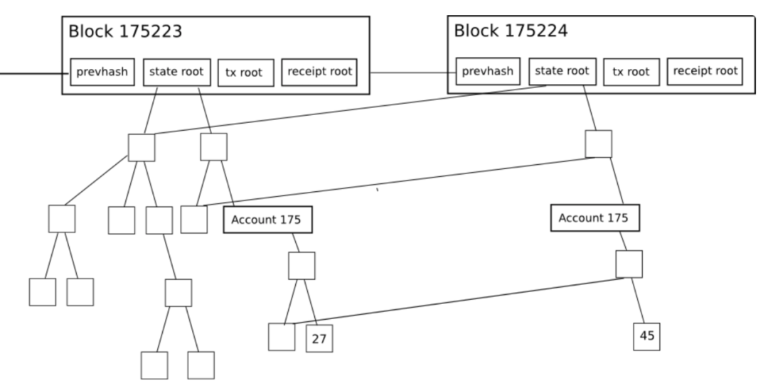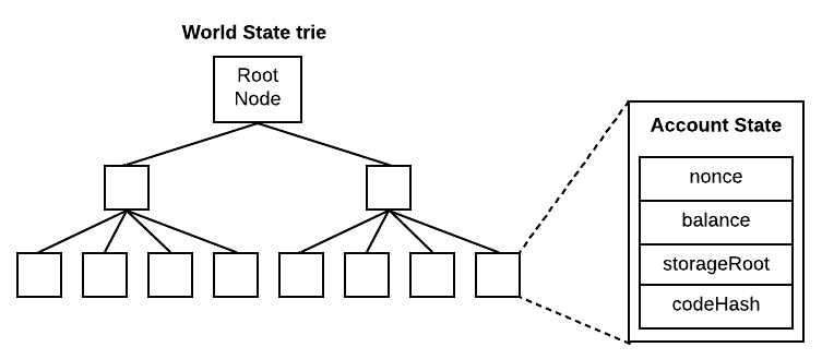 注-2.1:以太坊的状态是一个从地址到账户状态(addresses => (version,balance,nonce,codeHash,storageRoot))的映射。