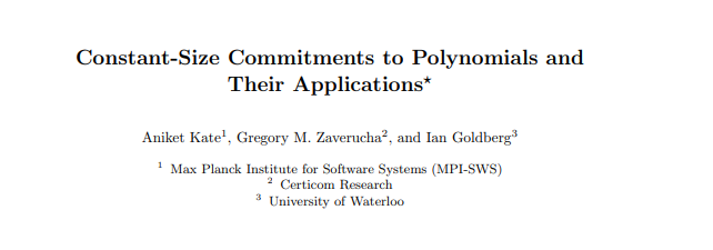 (译者注:本文所介绍的技术在密码学社区里一般称为 “KZG10 承诺”,得名于论文三位作者的姓氏首字母。但在介绍到以太坊生态中时,被简化成了 “Kate 承诺”,甚至连核心开发者也是这么称呼的。这是对另外两位作者的不尊重,不应该继续下去。在本译文中,凡原作者使用 “Kate commitment” 的地方,都一律译为 “KZG10 承诺”。)