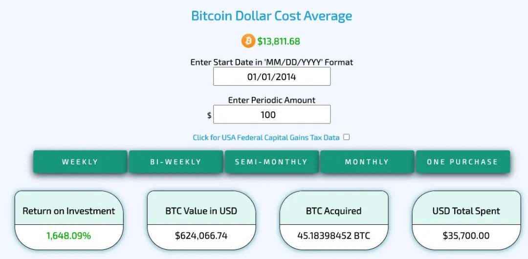 DCA例子 来源:Bitcoindollarcostaverage.com