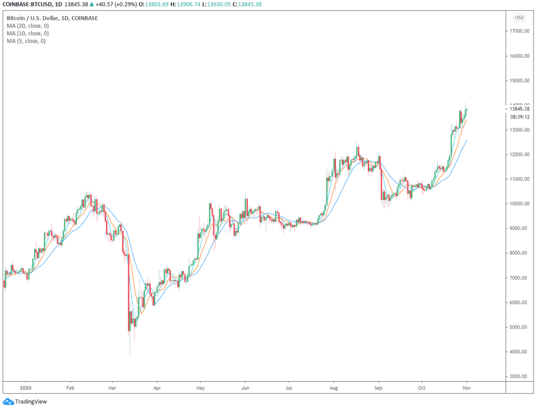 例如,2020年3月,各个主要交易所的比特币价格突然跌至3600美元。截至11月1日,比特币的价格已经超过13800美元,自那以后上涨了三倍多。