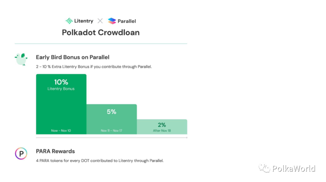 我们一个非常棒的合作伙伴 Litentry,会给予通过 Parallel Auction Loan 产品贡献给 Litentry crowdloan 的用户最高 10% 的额外奖励。