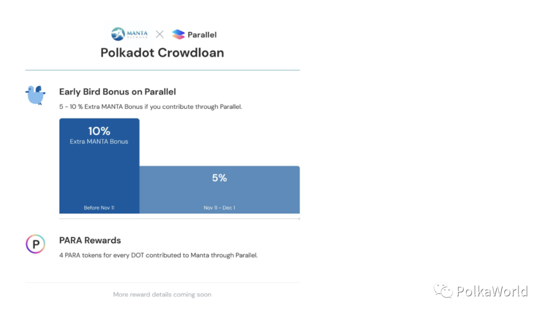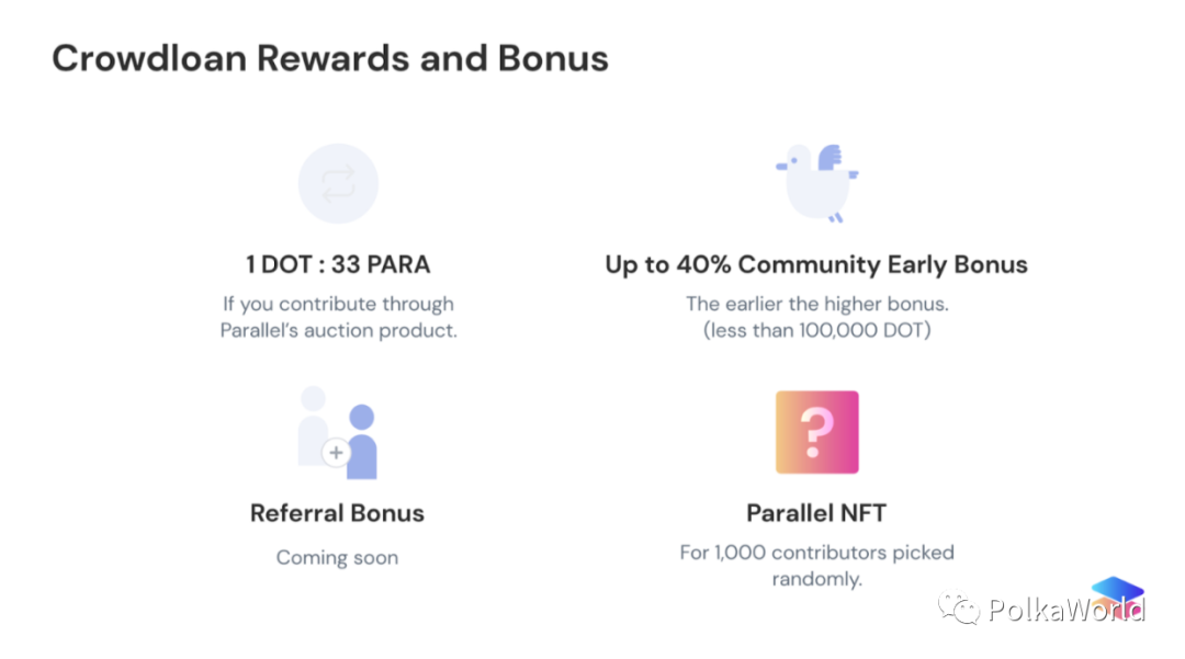 除了 1DOT = 33 PARA 的基础奖励,用户还会获得高达 40% 的早鸟奖励以及额外的奖励。