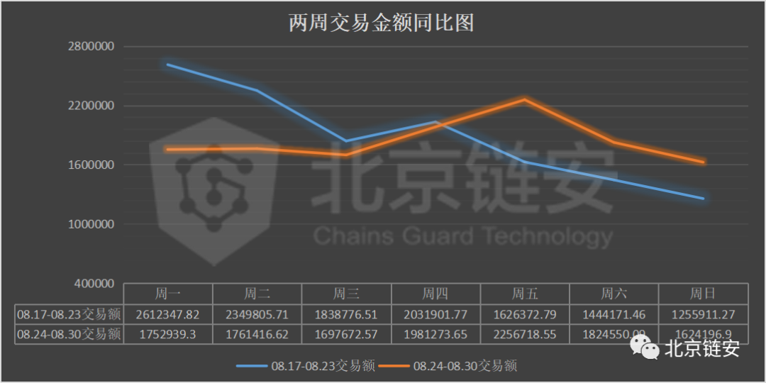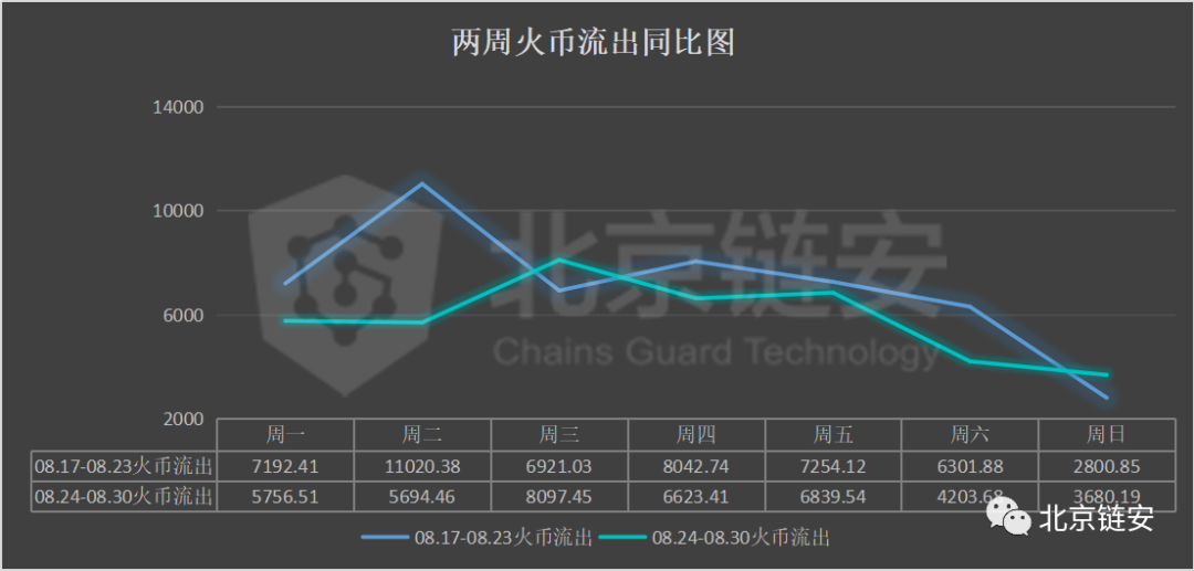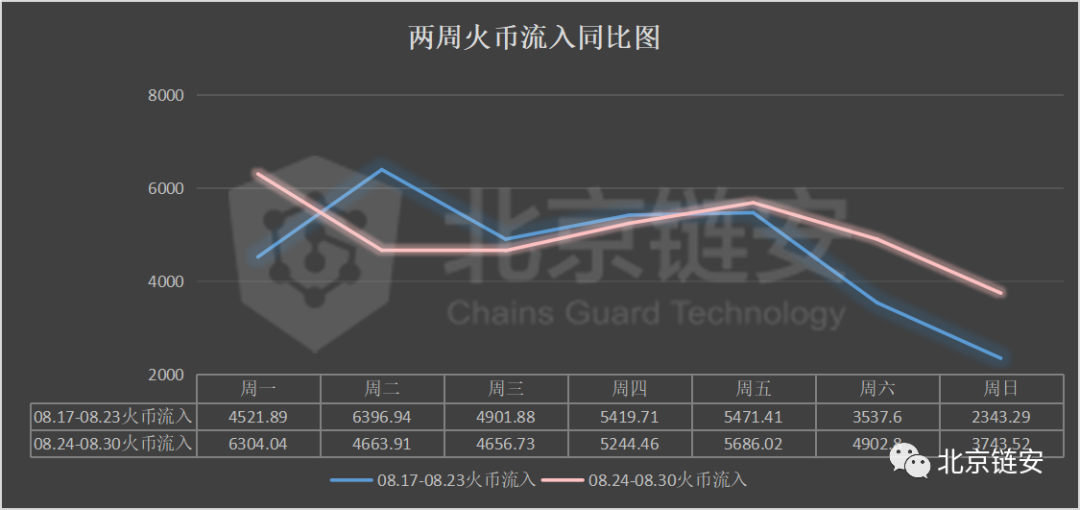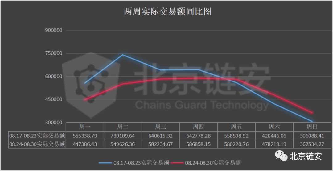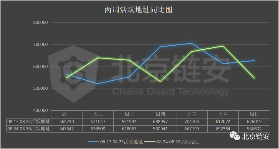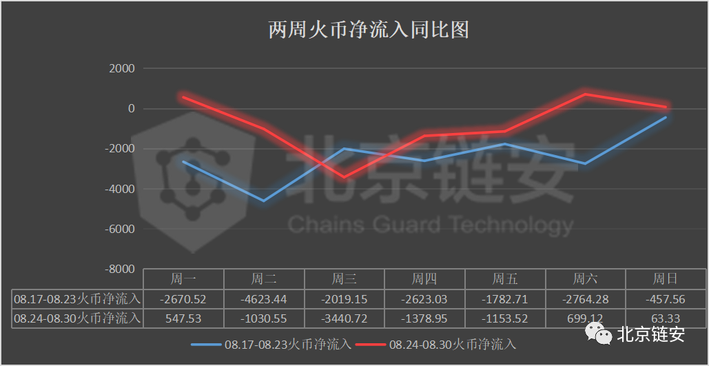 从过去一周(08.24-08.30)数据来看,链上数据较前一周相比整体继续下降,但是幅度依然不大,但是交易所的数据出现较大变化。