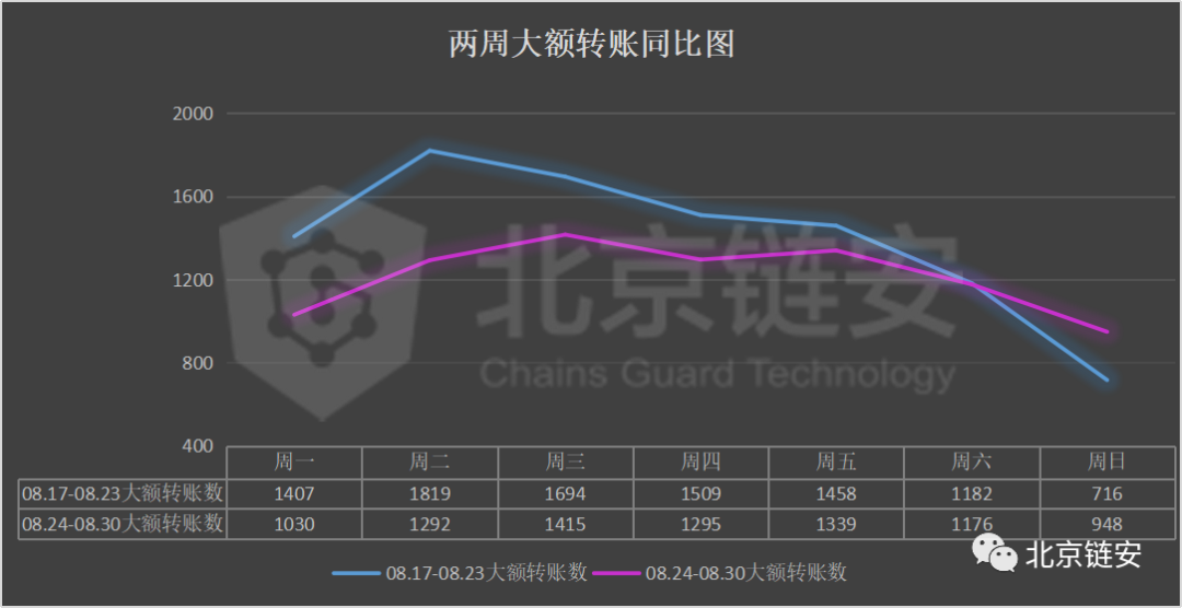 (单笔交易发起额大于100BTC的被认为是大额转账)