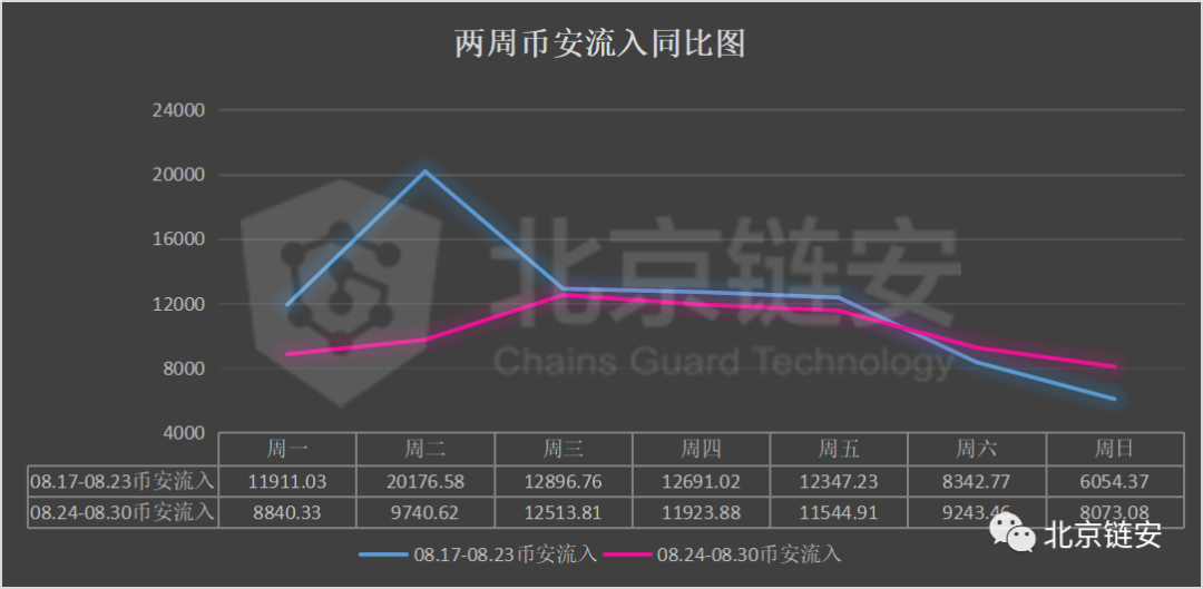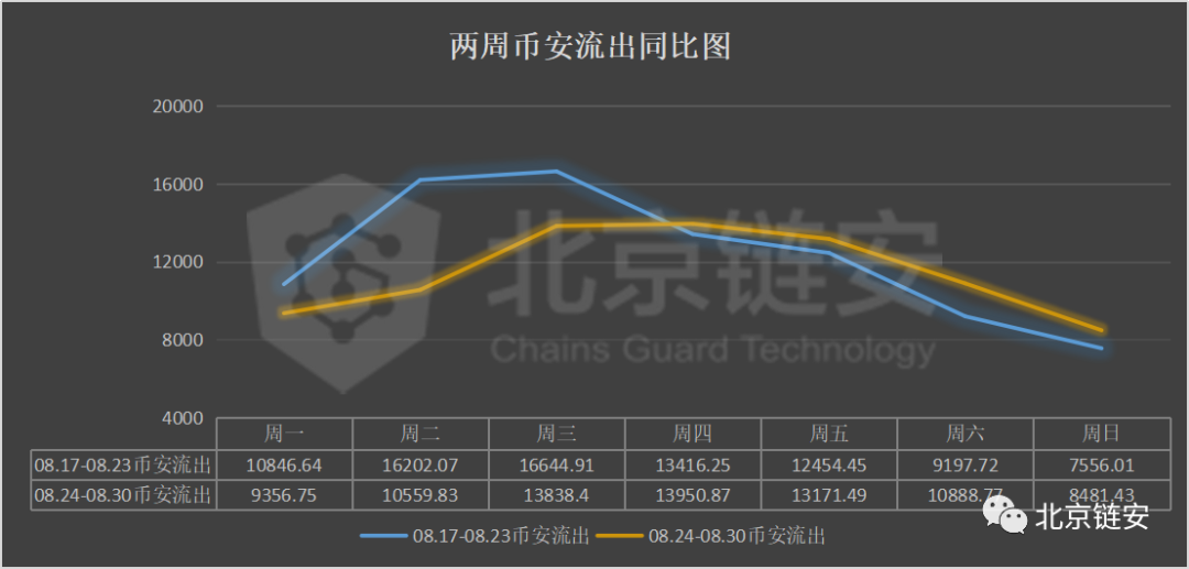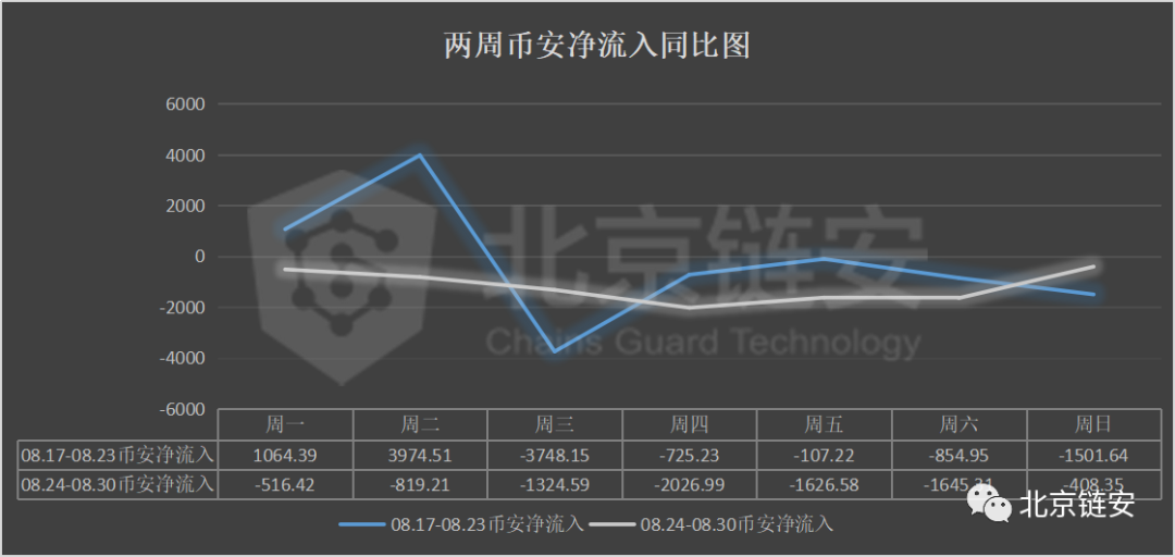 从数据来看,币安交易所这一周每天都处于净流出状态,在此趋势下,整体较前一周净流出上涨340.79%。