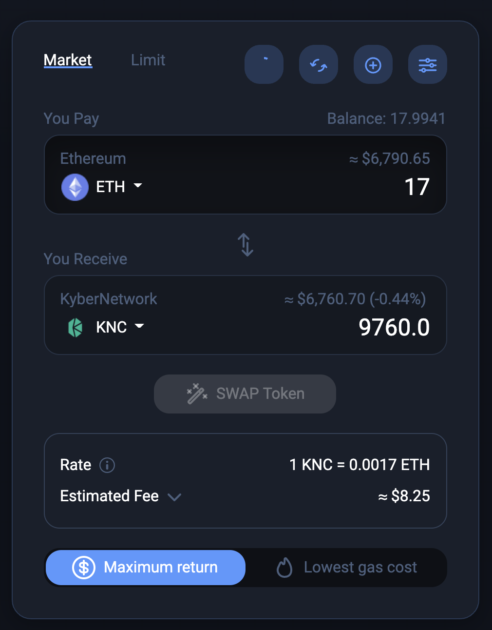 Pathfinder的新功能还包括“最大回报”和“最低gas费用”选项。如果用户选择了前一个选项,则将使用复杂的路由进行交易,以确保用户获得最佳兑换率。而在“最低gas费”选项中,互换交易是以市场价格进行的,这不需要在不同交易所或复杂的路径之间进行分割,这使得用户能够支付尽可能低的gas费用。
