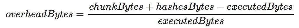 默克尔化开销取决于分块中包含的合约字节(即使这些合约字节没有使用),以及这些分块的多重证明的哈希值所使用的字节: