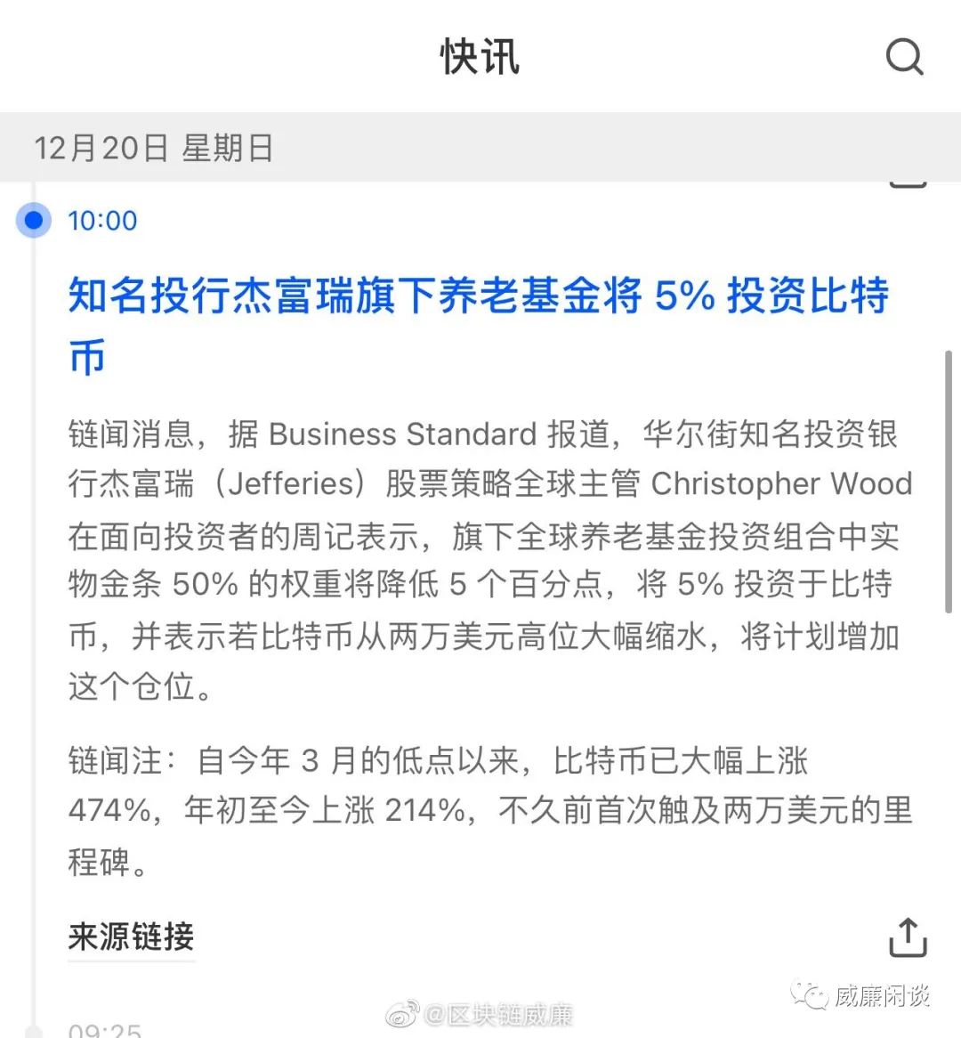 其实以前大家一直在想着全球最大的那么些个基金们,什么养老基金啦,对冲基金啦,都会配置比特币作为他们的“底仓”。
