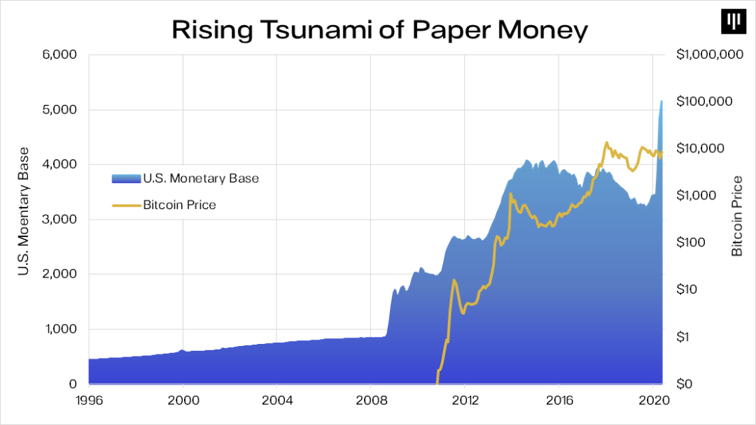 比特币是对之前印钞的一种回应。在这10年里,比特币的价格呈指数级上涨,这段时间里的货币发行量是空前的。今天世界上正在发生的是一个更大的数量级。