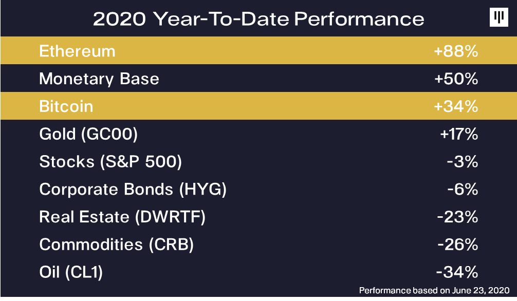 *图:2020年比特币、以太坊、黄金等投资品的表现