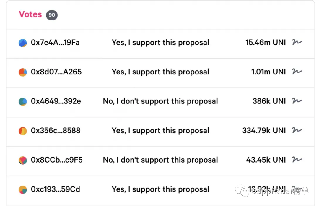 该提案希望将UNI代币分发到与之前相同的池中,但比例为之前的一半。在11月19日投票结束前,这项提案至少需要2500万UNI的支持。有趣的是,目前赞成的1686万人中,有1546万人来自一个地址——Dharma:Deployer。