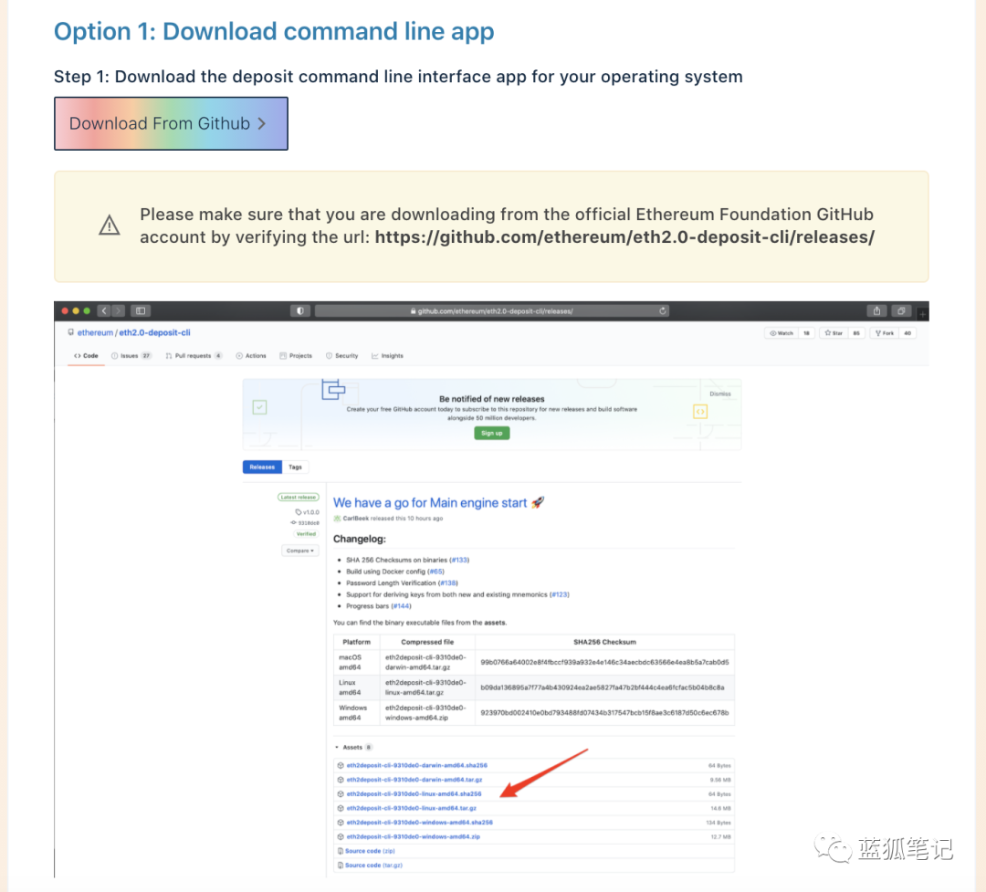 第一种是使用从Eth2 Github代码库下载的二进制可执行文件,然后在终端窗口运行./deposit命令。