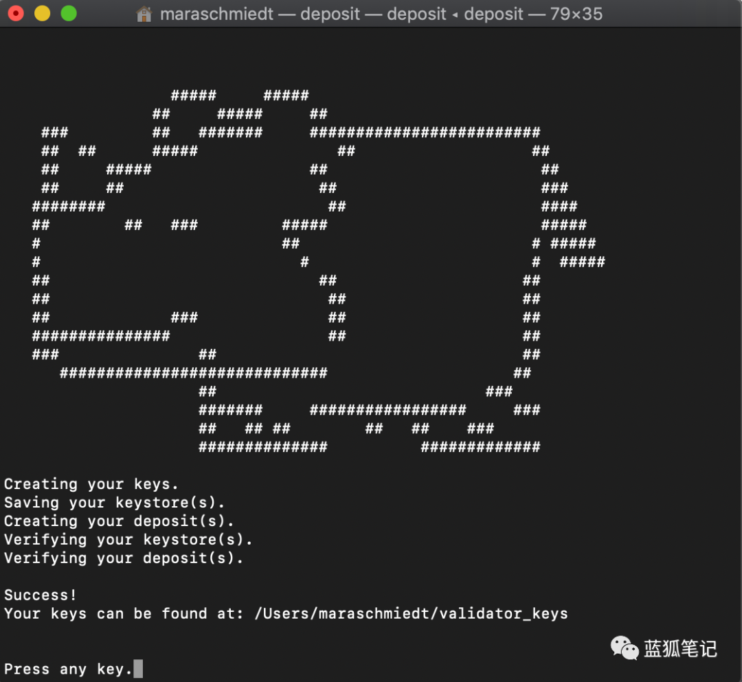 一旦你安装了deposit-CLI工具并在终端窗口运行,系统会提示: