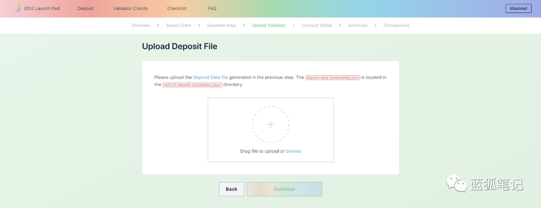 差不多就要完成了!下一步是上传你在上一步生成的deposti.json文件。
