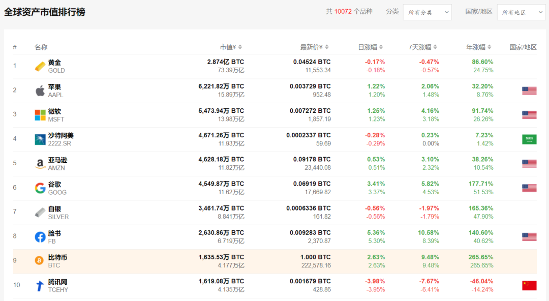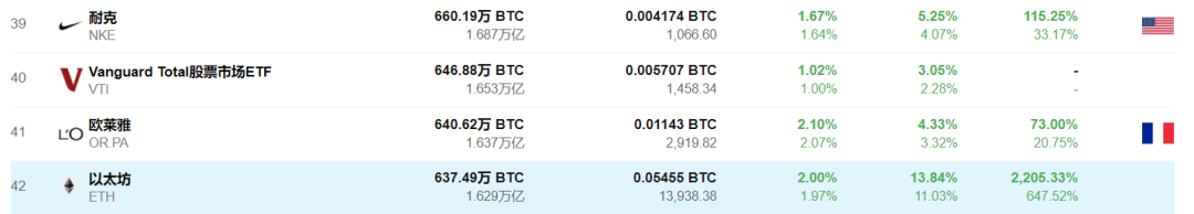 数据显示,截至7月30日,比特币排全球资产市值第9名,其市值约为4.177万亿人民币。以太坊在全球资产市值中排名第47(排名最高时曾升至全球资产第14位),现在其市值为1.629万亿人民币,虽然不到比特币市值的一半,但在加密资产领域中以太坊流通总市值高仅次于比特币。