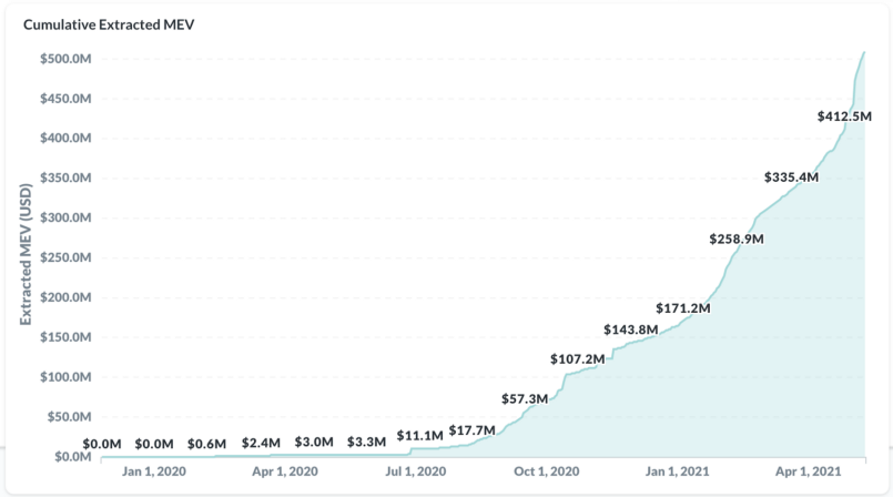 去中心化金融协议算法套利,即众所周知的“矿工可提取价值”(MEV),是一个庞大且不断发展的行业。最初,它规模很小,2017年时约为每年100万美元(Bancor和EtherDelta上)。根据估计,现已增长到约5亿美元/年。