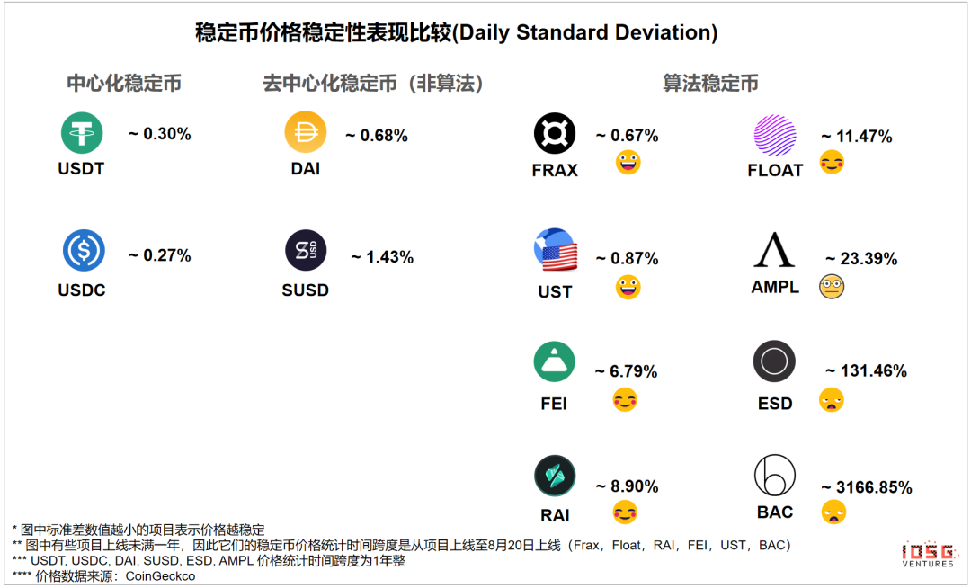2. 抵押品能给用户带来更大信心。更大MakerDAO、Synethetix采用的超额抵押、给系统提供一个价格的保护层。所以以目前的算法稳定币价格稳定性角度来说,部分抵押派的项目整体表现要优于无抵押派。