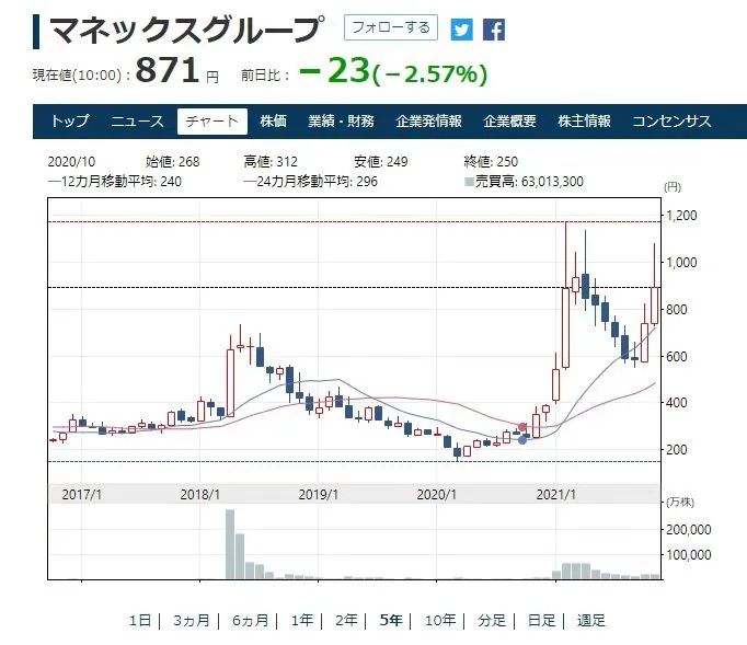 最近其母公司 Monex 集团旗下交易所更是因要在美国上市一路上扬。2021 年度以来,东证 1 部上市的 Monex 集团的股票暴增到 1000 日元以上,要知道,在日本数字货币交易行业至暗的 2019 和 2020 年,Monex 股价一直在 200-400 日元浮动,甚至在 2020 年 1 月跌至谷底。