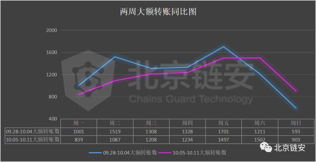 (单笔交易发起额大于100BTC的被认为是大额转账)