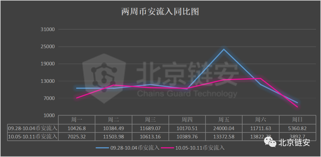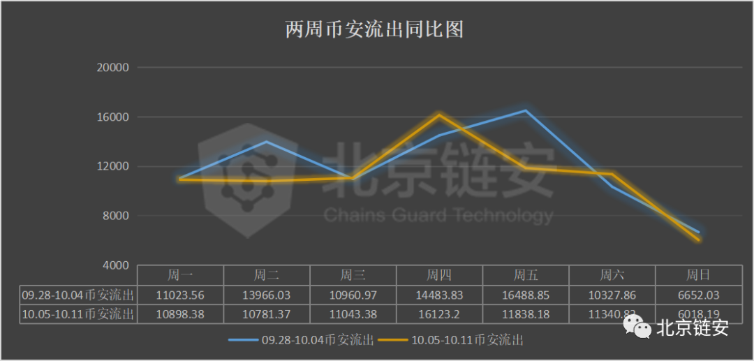 从数据来看,由于本周币安的流入数据降幅相较于流出数据更大,是的交易所净流出额度大幅放大。