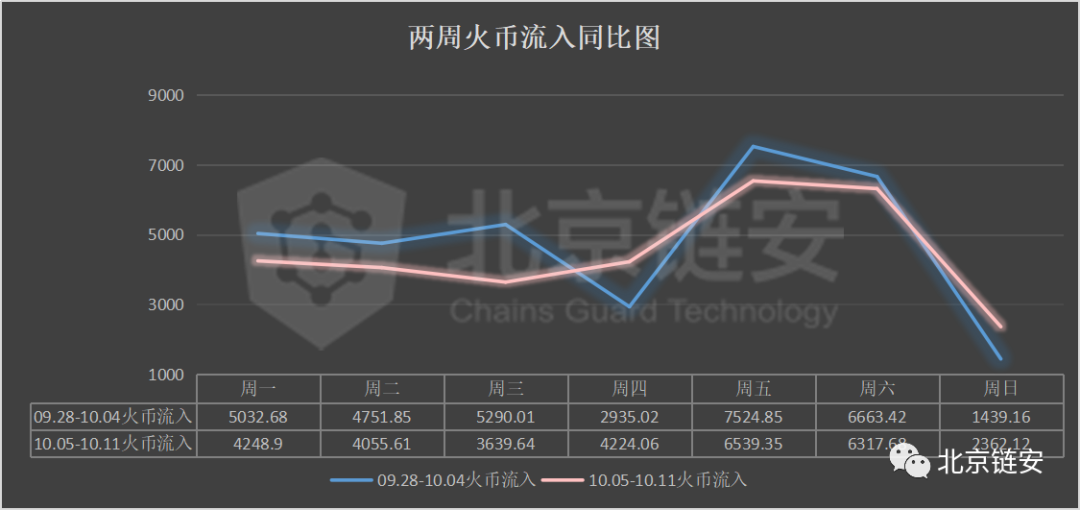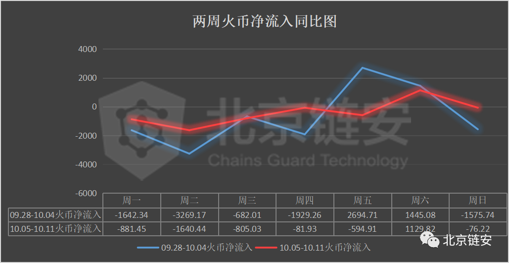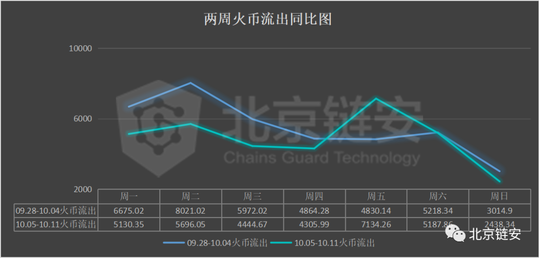 从数据来看,火币交易所虽然也维持着净流出状态,但是近三周已经开始出现大幅收窄的趋势,本周净流出已经降到3000BTC,火币能否保持这一态势,甚至完成周净流入转正是接下来两三周的一大看点。