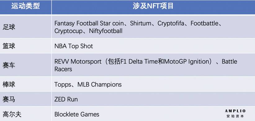 NFT+体育分类及代表项目