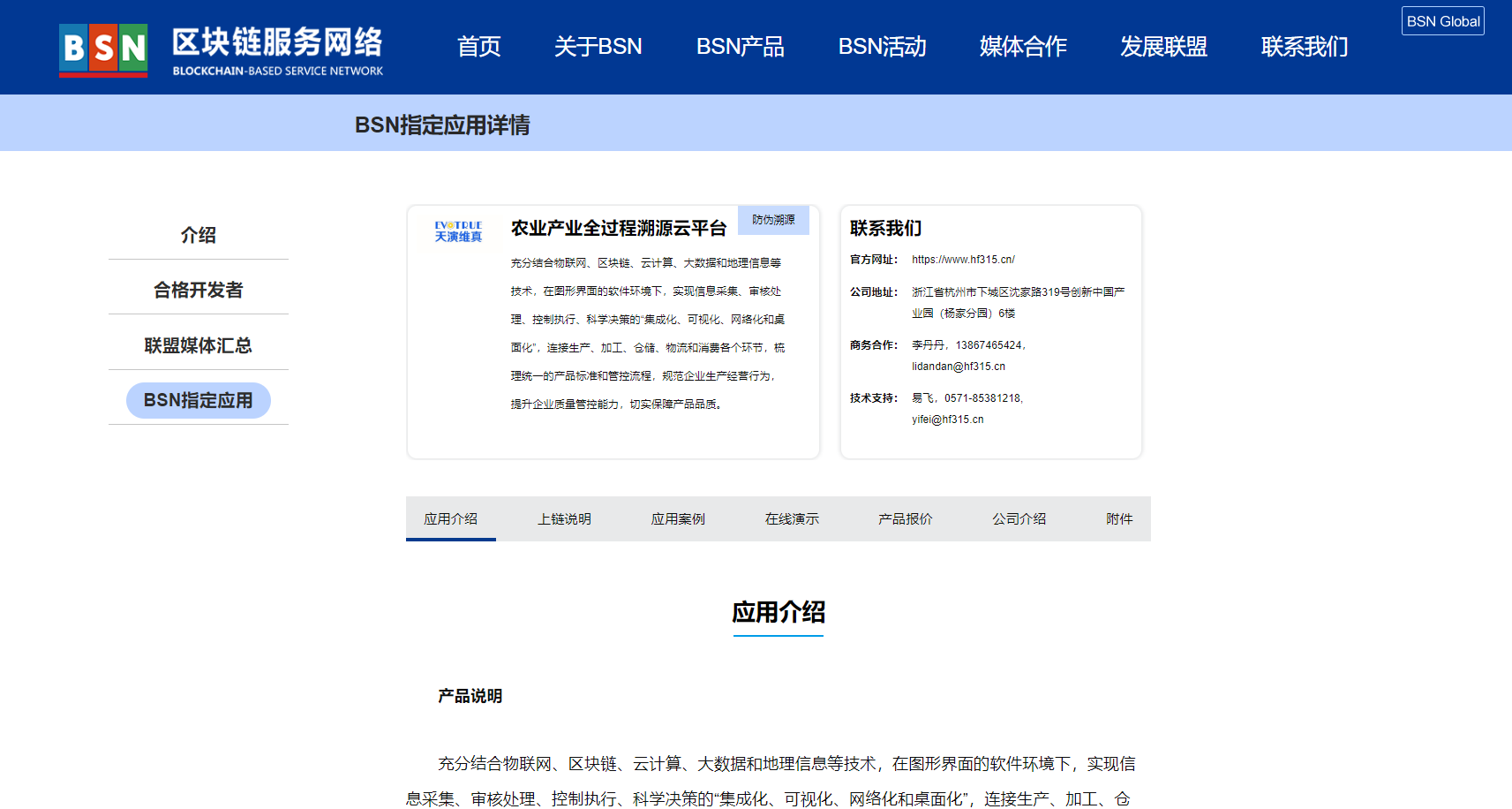 如果您对某个应用感兴趣,可以点击查看详情来了解产品的详细说明、特性、上链方式、基本报价等。如果您是企业用户,对产品的使用或购买有兴趣,可以直接通过网站公布的联系方式来与应用提供方直接沟通,BSN在此过程中不收取任何费用。