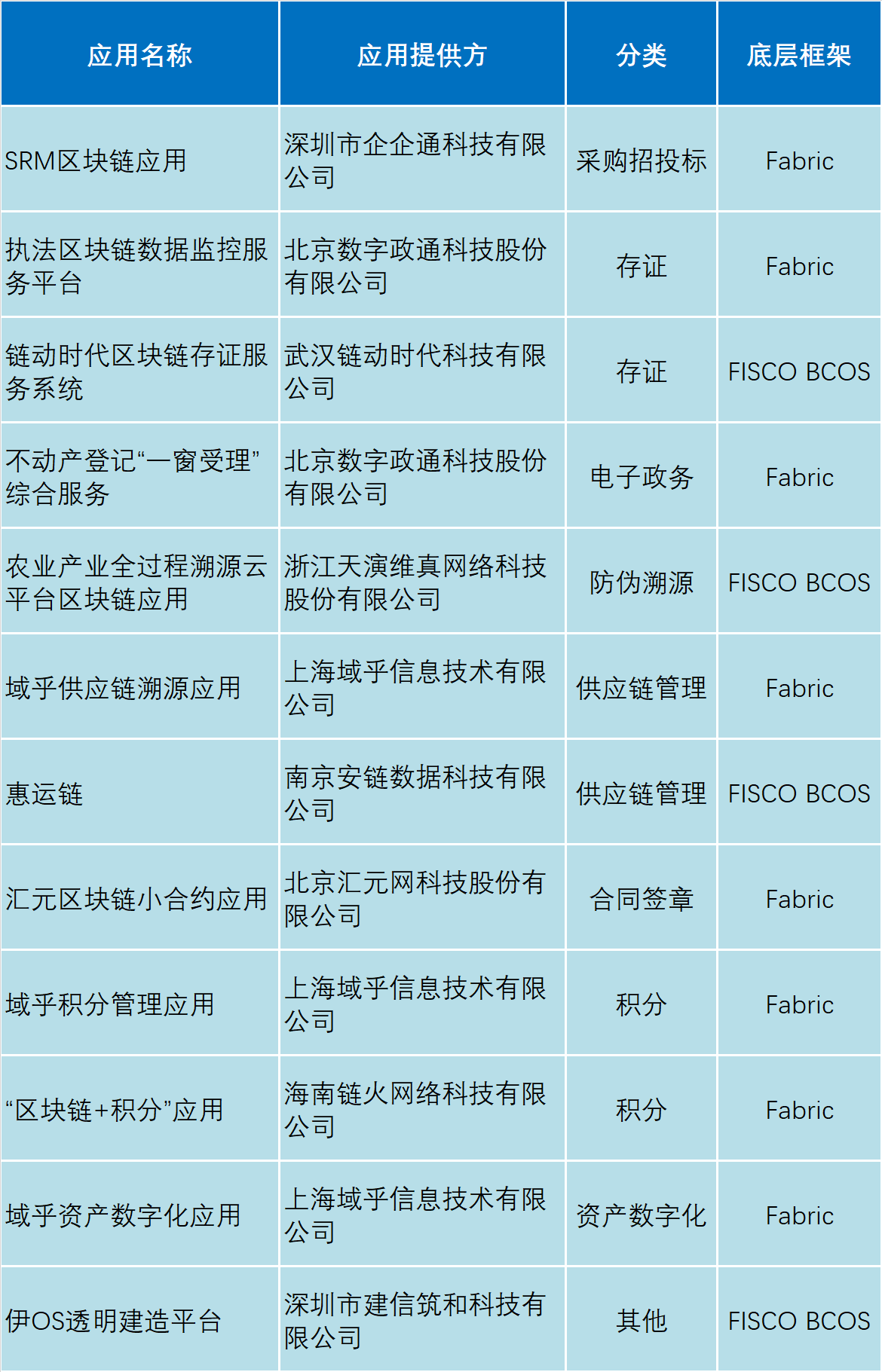 活动推出伊始,BSN发展联盟收到了来自众多开发者提交的优秀作品,BSN开发者委员会根据应用准入机制对作品进行了认真审核及综合考量,本次优先选出共9种分类的12个区块链应用,作为第一批入选BSN的指定应用,这批应用已经接入BSN服务网络,分别使用了Fabric或FISCO BCOS底层框架,后续接入应用随着BSN适配底层框架的增加可选择更多框架进行部署。请至BSN官网查看全部指定应用,点击官网导航菜单“发展联盟”-“BSN指定应用”,目前只支持PC端查看。