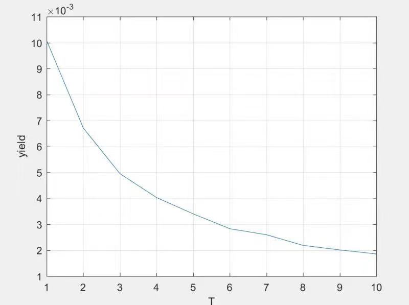 我们来做一个假设,一个人抵押借贷,给定利率是 r ,但是一旦停机,就得到了从贷款开始到停机时间的利息收益,其后只能得到无风险收益。假设无风险收益是 0,那么在给定 r 的情况下,不同抵押率会让贷方得到不同的收益,这就是抵押算子的风险结构,大概就是这个图形,这也是一种独特的期限结构。
