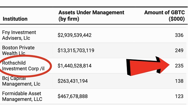 罗斯柴尔德投资公司通过灰度购买27枚比特币