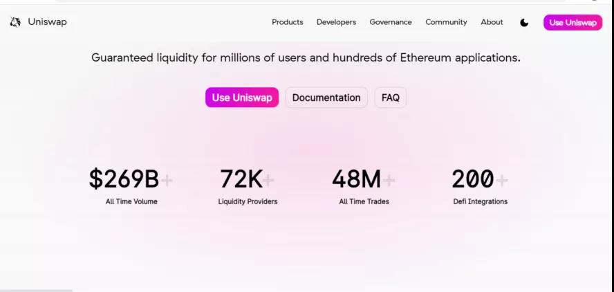 Uniswap是以太坊上的DeFi龙头项目,开创了AMM(自动化做市商)模式的先河,运行以来周交易量可达到100亿美元量级。Uniswap不仅跟传统的加密资产交易平台不同,也和普通的去中心化Token交易平台不同,Uniswap所有充提、交易动作都是由以太坊智能合约实现的,因此用户的资产安全可以得到绝对的保障。