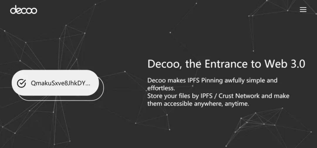 在分布式存储领域中,没有一系列的基础设施、中间件和工具性支持,用户是无法直接使用IPFS和Crust这样的协议的,而Decoo的作用,就是在技术上、产品上去填补中间的空白。Decoo与Crust Network同属于DCF(Decentralized Cloud Foundation,去中心化云基金会)孵化项目,其中Crust Network是实现分布式云存储的区块链激励层协议,而做为Crust生态伙伴的Decoo则提供了基于协议层的服务和技术解决方案。通过这两项技术的紧密结合,Decoo构建了一种更可靠、更安全、更高效、更低成本、更低使用门槛的分布式云存储服务。