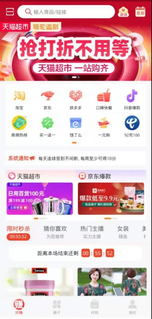 骆驼返利商城App页面展示 数据来源:骆驼返利商城App
