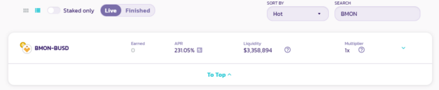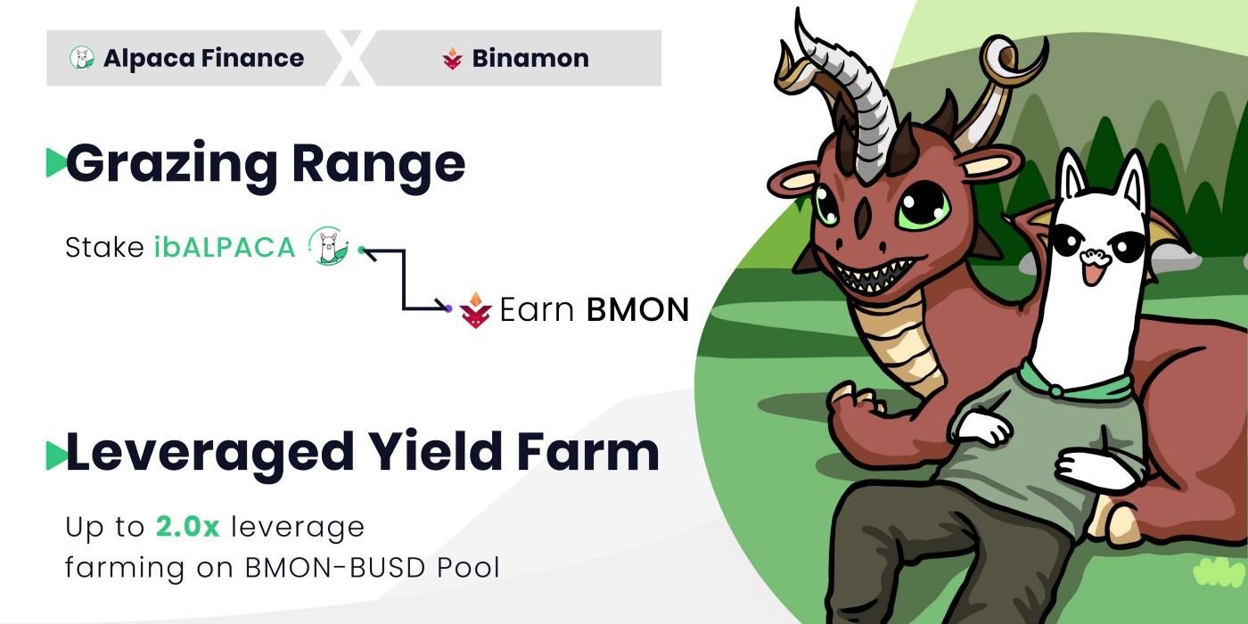 通过这次合作,所有的羊驼将可以在 PancakeSwap 上开立最高 2 倍杠杆的BMON-BUSD 收益农场仓位。此交易对目前的 Cake 奖励 APR 高达 ~230%!该牧场池将会于 2021 年 10月 21日上午 10点 (GMT 时间) 上线。