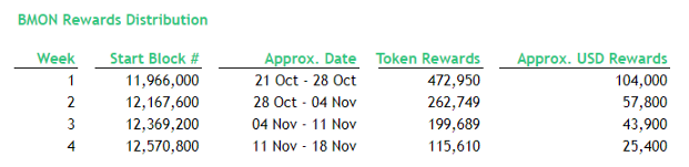 作为牧场池计划的一部分,您可以通过质押 ibALPACA 以赚取 $231K USD 的 BMON 奖励,这些奖励将会在 4 周的期间内发放到牧场池。