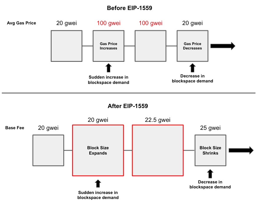 在上周四以太坊完成了伦敦升级。在过去的数月里,以太坊核心开发一直在进行伦敦硬分叉的工作,这也是继柏林升级后的再一次升级。在本次升级中,最吸引人注意的莫过于EIP-1559的提案。这个提案的出现将彻底改变以太坊的用户看待以太坊的方式,关于EIP-1559的提案在此次升级后主要影响的方面为以下三点:1、交易的gas费用可预估,消除用户对交易费用的不确定性2、使ETH、以太坊网络和用户之间创造联系和共生的关系3、对基础费用的销毁,改善ETH经济生态,增加一种类似于比特币的供应有限的说法 交易的gas费用可预测,消除不确定性提到交易所需要支付的gas,得先了解这部分费用的组成:基本费(base fee)、小费(priority fee)、最高费用(max fee)。基本费,即交易被打包进区块需支付的最低gas价格,基本费用由协议设置,属于可变量,是区块头(block header) 的一部分,该部分在升级后是用户支付的总费用中会被销毁的那部分。小费:也称为优先处理费,即用户为让矿工先处理自己的交易而愿意以小费的方式像矿工支付的gas,小费的多少由用户设置,包含在用户交易的金额中,且这部分费用会被网络直接支付给矿工。最高费用:用户对于将要进行的交易愿支付的最高费用价格,由用户自行设置,同包含在交易之中。在8月5月完成论断升级后,EIP-1559正式实施后,若是想交易的费用满足条件,则需要用户自己设置最高费用大于基本费与小费总和时,该交易才会有效,另外超出部分也会被退还给用户,用一个形象的公式表达即:用户退款金额=最高费用-(基本费+小费)EIP-1559的上线,使得用户在链上发起交易时能增加其交易被打包的可确定性,而这一切只需要用户自己确保交易中包含有足够的费用来支付基本费和小费即可;同时也在不用担心自己为完成交易支付过多的gas费用,因为多出部分会直接退还到用户账户内。需要注意的是,这需要随着新的 EIP-1559 交易类型被创建,钱包和其他服务或基础设置提供商都需要进行升级,才可以支持这种建议类型。再者,EIP-1559施行后对于之前的传统交易类型依然有效,以太坊网络会把传统交易的gas价格与当前的基本费之间的差值视为小费支付给矿工;但这一点并不会涉及到用户多支付gas,而网络会将传统交易的退款给到用户。大概的情况可参考下图: 区块大小的变化,促使gas费用趋于稳定EIP-1559除了能让区块中的gas具有可预测性外,还可让区块内gas的价格平稳。在升级前以太坊区块的gas上限为15000万gas,gas的上限也可看作以太坊区块的大小,gas的上限限制了单个区块中可容纳交易的数量。所以当以太坊中交易数量出现激增,则直接促使gas价格上涨,这个状态下的区块总处在满块,且区块大小也会有一定上限。而EIP-1559可使区块的大小临时增加,以适应突然增加或涌入的交易需求,而它的实现需要两个不同区块参数实现——gas上限、目标gas使用量。即若目标gas使用量为gas上限的50%,则意味着单个区块的目标gas使用量为1500万gas,而区块的上限则为3000万gas。为确保区块大小接近目标gas的使用量,若当区块gas使用量小于该目标使用量时了,以太坊则会降低基本费;如果使用量大于该目标的话,则将增加费用。而在这,其实存在一个问题,当使用量大于该目标时,gas的基础费用会明显增长的很快,且当区块大小达到上限时,其基本费将增长12.5%,即在连续满块的情况下,基本费将在大约 20 个区块 (约 260 秒) 增长 10 倍,在 40 个区块 (约 520 秒) 增长 100 倍。总结一下,就是区块大小在可变的情况下,通过允许协议临时增加可用的区块空间使得gas价格变得平稳,在短期内区块之间的gas费用涨幅波动也是相对平稳的。 基本费销毁,调整以太坊经济生态新提案EIP-1559上线后,最后一个变化点则是基本费在交易完成后会被销毁并从流通中移除。之所以出现这样的调整,是因在交易中基本费支付给矿工,高额的基本费虽然会激励矿工的积极性,促使矿工会向网络发送高昂的交易费,这样他们在挖出区块后可收回这笔费用。而现在调整后,基本费会被销毁,也就保证矿工不再会关注该笔费用。另外,基本费被销毁也使得ETH成为以太坊协议固有的一部分。因为任何加密货币或法币都可用于支付以太坊上的处理交易的费用,用户可在包含交易费的情况下提交一笔交易,并与矿工商定以太坊外支付交易费用。而EIP-1559上限后,要求用户必须在交易中包含一笔ETH作为基本费,才可被以太坊网络接受成为有效交易,这也使得ETH资产和以太坊网络建立起更加健康的关系。 总而言之,此次伦敦升级后EIP-1559将会极大程度改善以太坊网络上用户对交易部分的体验。现目前来看,大家对于EIP-1559关注最多的在其对ETH的销毁,和矿工获利的问题很在意;但长远来看,EIP-1559所带来的的好处远比预想可能会更多,不仅对交易过程进行优惠调整,对于以太坊的经济生态,以及存在的通货膨胀都会有一定的改善。