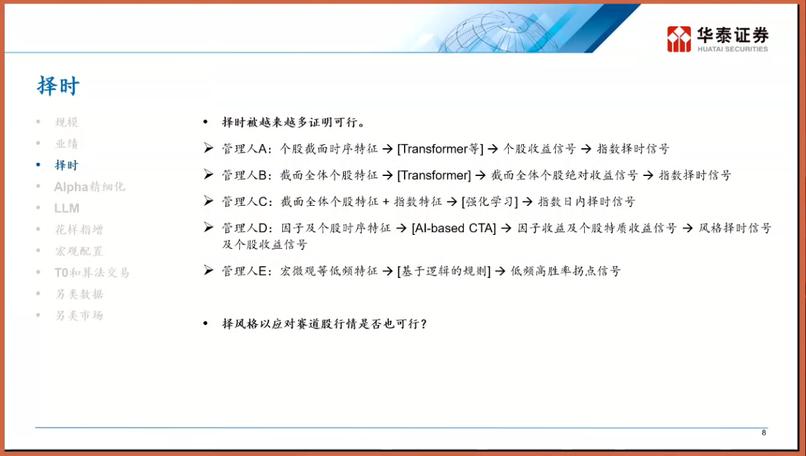 曾经的头部玩家格局被打破,博道、国金等机构凭借极其灵活的策略异军突起。在何博士的调研中这些业绩领跑的公募量化,本质上是“披着公募外衣的私募”。它们拥有极高的换手率,策略迭代速度惊人,甚至在日内回转(T+0)的使用上不输顶级私募。