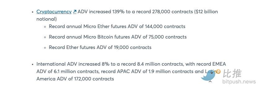强制持有: CME Coin 捕捉的是“清算流”。只要银行在 CME 开展业务,为了满足即时保证金要求,它们就必须成为该代币的“强制持有者”,随着需求的激增,这种制度性刚需是任何原生加密币无法企及的。根据1月份发布的财报,2025年 CME 的加密货币日均交易量已达到 120 亿美元,其中微型比特币(MBT)和微型以太坊(MET)期货合约表现尤为强劲。