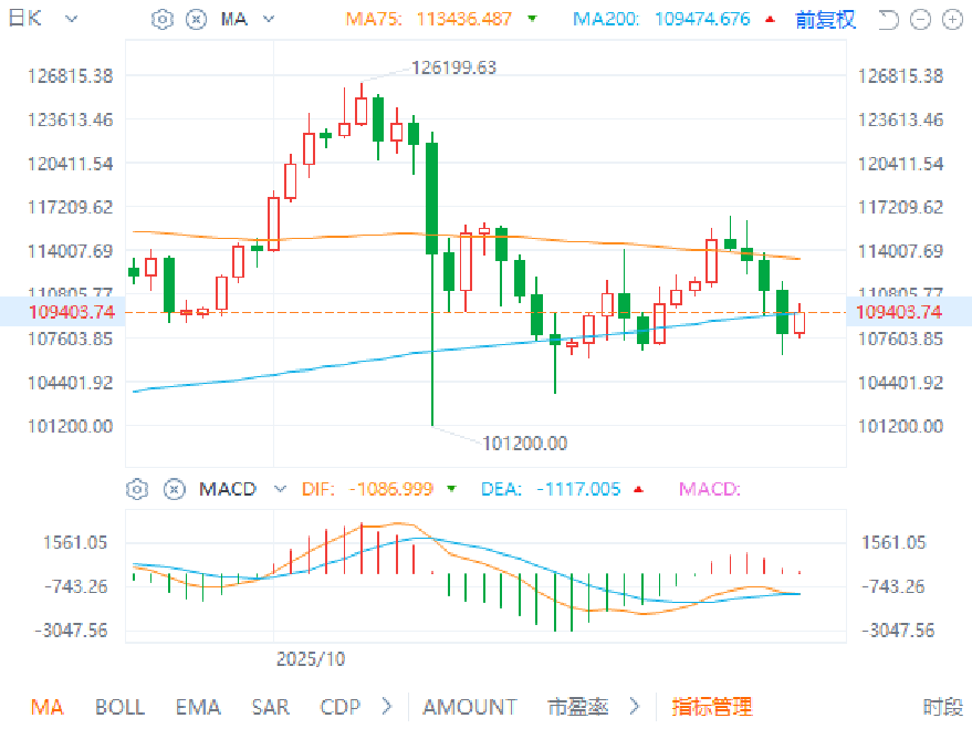 三、技术面分析:BTC 处于关键震荡区间,调整周期接近尾声